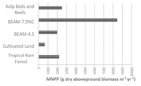 Figure 8 graphs the Mean Net Primary Production (MNPP) of above ground biomass, which represents yield in grams per square meter per year.