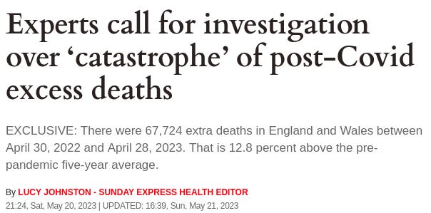 — Experts call for investigation over ‘catastrophe’ of post-Covid excess deaths (May 20, 2023)
