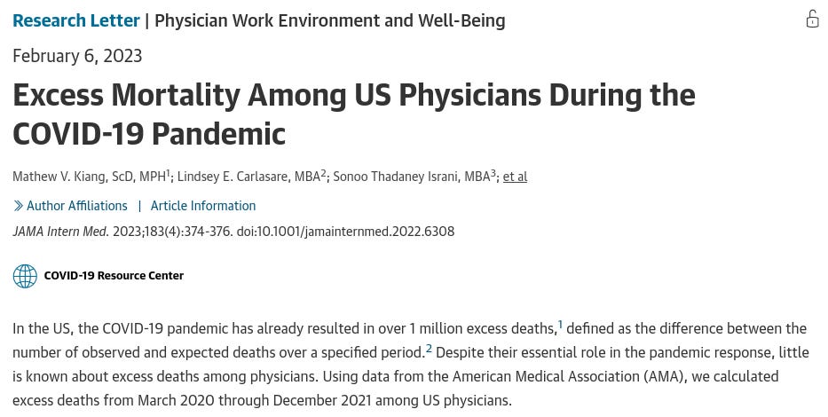 — Excess Mortality Among US Physicians During the COVID-19 Pandemic (Feb. 6, 2023)