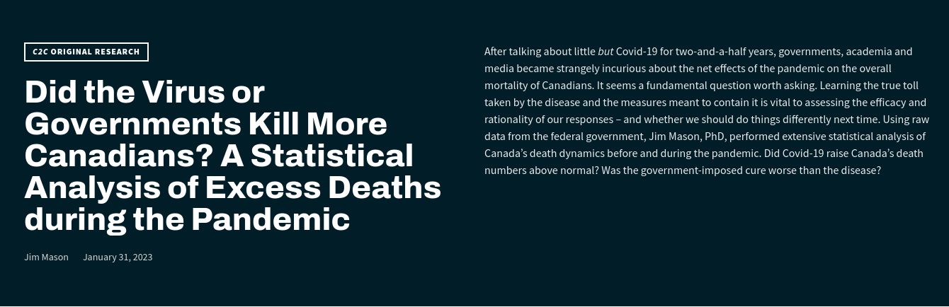 — Did the Virus or Governments Kill More Canadians? A Statistical Analysis of Excess Deaths during the Pandemic (Jan. 31, 2023)